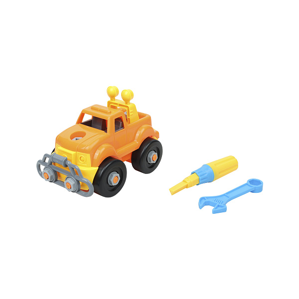 В комплект набора Монстр-Трак включен автомобиль, а также отвертка и гаечный ключ. Все детали автомобиля и инструменты для сборки сделаны из АБС-пластика. Играя с машинкой, ребенок развивает моторику рук, внимательность, логическое мышление.