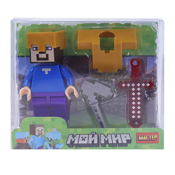 Конструктор «Мой мир» — идеальный подарок для юных фанатов популярной игры Minecraft. В набор входит фигурка Стива высотой 8 см, меч, кирка и съемный доспех. Руки Стива подвижны и могут держать оружие. Благодаря этому ребенок сможет перенести любимую игру в реальность. Игрушка способствует развитию мелкой моторики и воображения.