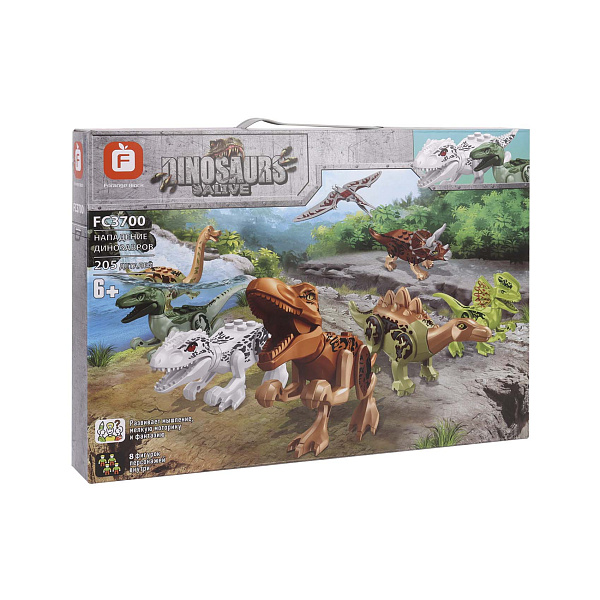 Конструктор «Нападение динозавров», состоящий из более чем двухсот деталей, увлечет малыша на долгое время. Развивающий конструктор поможет создать восемь фигур древних динозавров и столько же человеческих фигурок. У ребенка появится множество идей для сюжетно-ролевых игр по мотивам фильмов или комиксов о динозаврах. Детали конструктора выполнены с хорошим качеством, они легко соединяются и разъединяются. Игры с конструктором хорошо развивают мелкую моторику и помогают ребенку улучшить аккуратность и точность движений. Также в ходе игр малыш сможет развить свою фантазию и способности к воображению.
