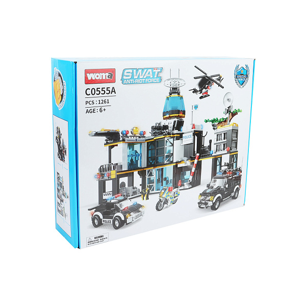 Большой набор блочного конструктора состоит из 1261 детали, с которыми ребенок соберет модель полицейского участка с разными отделами – тренировочным центром, головным офисом, гаражом, вертолетной площадкой и другими. Возле участка припаркованы полицейские машины, готовые выехать на миссию. А на крыше вертолет ждет вызова. Все это так же предстоит собрать любителю конструирования. Двери в офис открываются, камера и пушки двигаются в разных направлениях, а полицейский мотоцикл уже готов ринуться на задание из гаража.