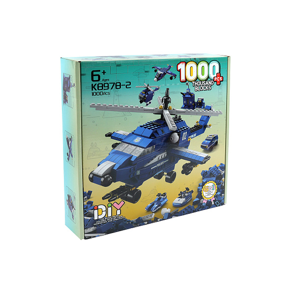 Желанным подарком для ребенка старше 6 лет станет тематический блочный конструктор. Из 1000 деталей можно собрать большой полицейский вертолет или 6 небольших единиц техники. Наглядная инструкция поможет детям справиться с задачей без помощи взрослых. С готовыми игрушками можно реализовать массу увлекательных сюжетов.