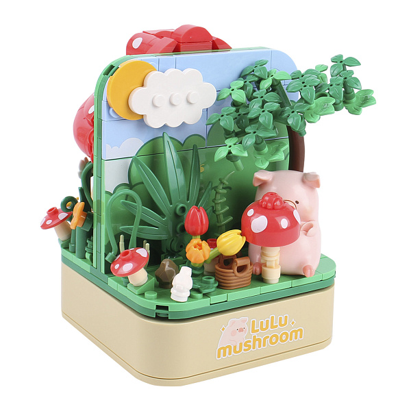 Конструктор «Свинка Lulu на качелях» представляет собой увлекательный набор из 381 детали, предназначенный для детей от 6 лет. Особенность набора — наличие поворотного механизма, обеспечивающего легкость трансформации одной локации в другую, что добавляет динамику игре. В комплекте предлагаются уникальные детали, позволяющие собрать две игровые локации: красочную площадку с качелями и уютную лесную полянку с грибами.
