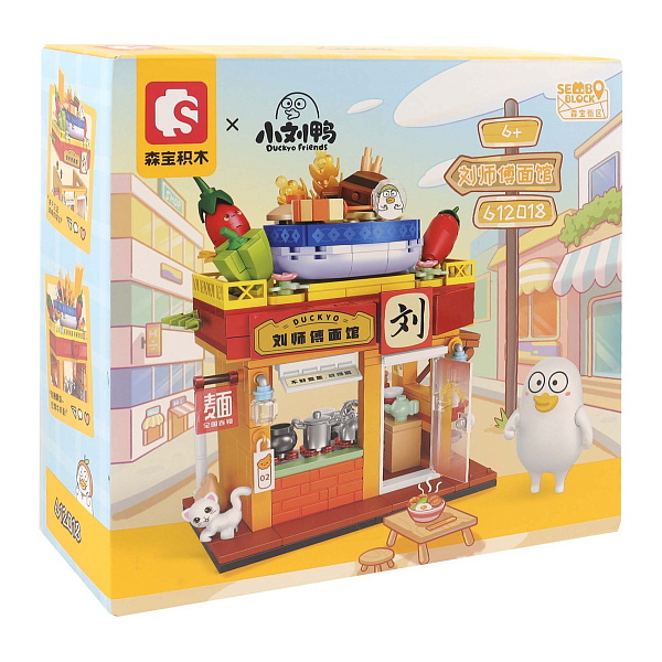 Конструктор «Утенок Duckyo в лапшичной» — это красочный набор из 495 деталей, предназначенный для детей от 6 лет. Он позволяет создать миниатюрную лапшичную, где обязательно найдется место приключениям и играм с утенком Duckyo.