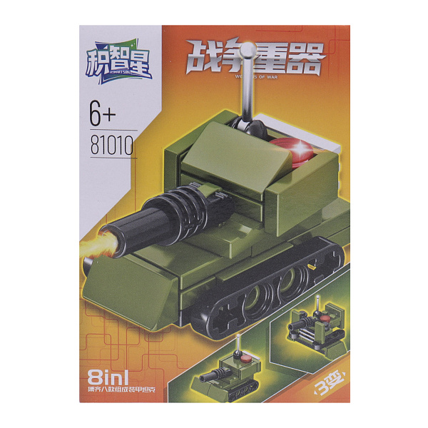 Конструктор «Военная техника» порадует любителей сборки и военного моделирования. Комплект позволяет собрать три различных варианта игрушек, погружая в процесс творческого конструирования. Состоит из деталей, выполненных в зеленом и сером оттенках, имитируя элементы военной техники. Размер собранной игрушки: 5 см. На упаковке представлены примеры различных моделей, таких как танк, военный джип и зенитная установка.