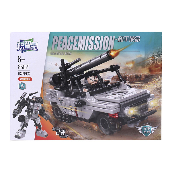 Конструктор «Военный транспорт» включает в себя от 184 до 204 детали для сборки различных моделей военной техники: танка, вертолета, внедорожника и боевого робота. Детали изготовлены из высококачественного пластика, что обеспечивает прочность и долговечность конструкции. Каждая модель имеет подвижные элементы, что позволяет ребенку создавать собственные сценарии игр.