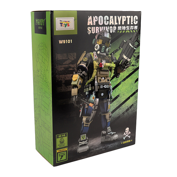 Фигура «выживальщика» выполнена с учетом всех деталей и аксессуаров, таких как автомат и кирка, что придает ей реалистичность и динамичный вид. Окрашенная в защитные зеленые, серые и черные оттенки, модель создает атмосферу выживания и настоящего приключения.