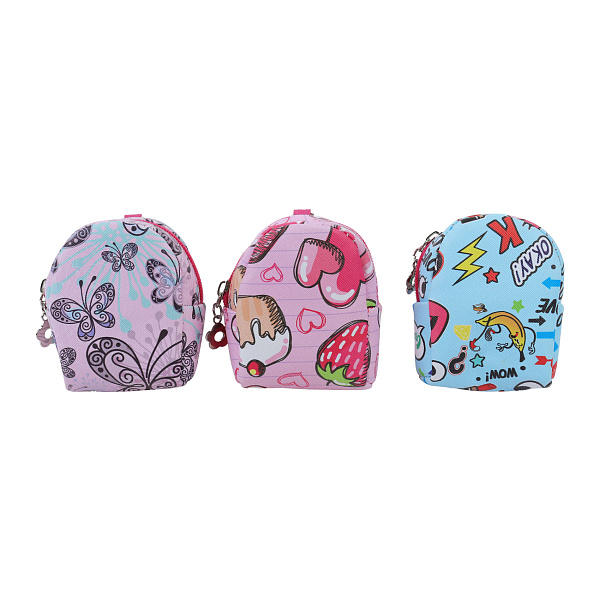 Вместительный детский кошелек в виде рюкзачка подойдет для мелочи и мелких предметов. Кошельки изготовлены из текстильного материала и представлены в двух ярких вариантах расцветок: нежно-розовой с рисунком из сердечек или сиреневый с принтом бабочек.