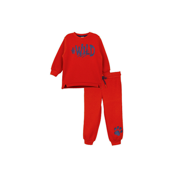 Комплект одежды ярко-оранжевого цвета стоит из кофты с длинными рукавами и темно-синей надписью на груди, а также из штанов с отпечатком синей собачьей лапы на одной из штанин. Штаны дополнены синими шнурками-завязками с оранжевыми наконечниками. Теплый комплект не только согреет ребенка в сильные морозы, но и подарит им ощущение комфорта, так как оба элемента одежды довольно мягкие и свободные. Вещи будут хорошо смотреться с разнообразной обувью и верхней одеждой. Комплект не создает дискомфорта, его ткань приятно прилегает к телу, пропускает воздухе и сохраняет тепло. В основе материал использован натуральный хлопок и полиэстер. Рекомендовано для детей ясельного возраста.