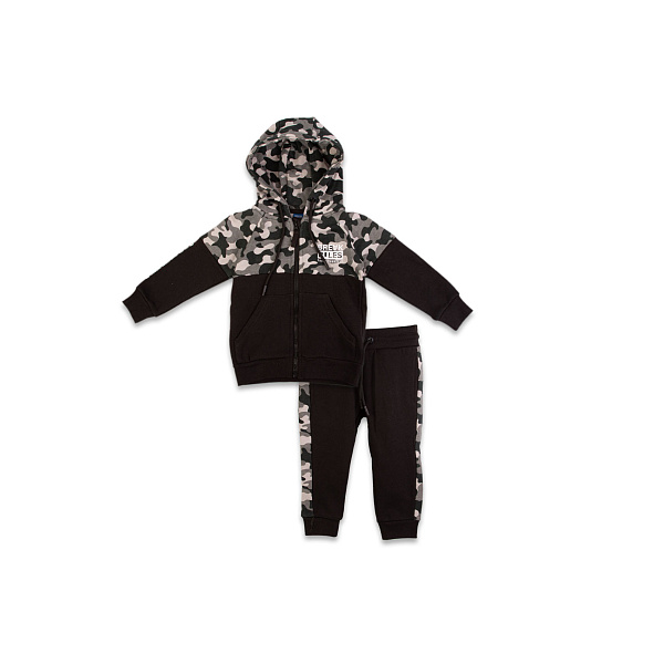 Мягкий костюм из трикотажного полотна в спортивном стиле необходим каждому маленькому мальчику. Он состоит из широких брюк на резинке и кофты с капюшоном. Такой костюм станет чудесным решением для прогулок в прохладную погоду, поездок в отпуск, на природу или на дачу.