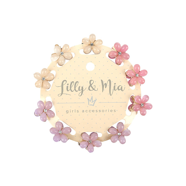 Набор из 10 мини-крабиков для волос выполнены в виде очаровательных цветков. Представленные в пастельной цветовой гамме (бежевого, розового и сиреневого оттенка), крабики имеют привлекательный дизайн с прозрачным отливом и дополнены блестящими стразами в центре каждого цветка. Аксессуары изготовлены из пластика, обладают прочностью и устойчивостью к износу, а нежные оттенки аксессуаров способны украсить разнообразные прически и подходят к большинству нарядов.