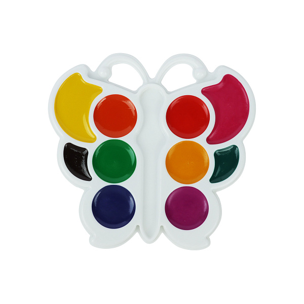 Акварельные краски в оригинальном футляре в форме бабочки понравятся любому ребенку старше 3 лет. Они привлекают внимание насыщенными оттенками, быстро растворяются водой, отлично смешиваются. Для рисования можно использовать специальную и обычную бумагу, любые альбомы.