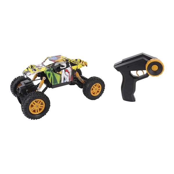 Краулер на радиоуправлении 4WD в масштабе 1:18 – мощная игрушечная модель для любителей внедорожных приключений. Автомобиль обладает эффектным дизайном с яркой графикой на кузове. Массивные колеса с глубоким протектором обеспечивают отличное сцепление с различным типом покрытия.