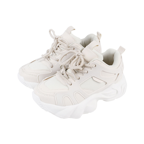 Кроссовки для девочек представлены в стильном бежевом цвете, который универсален в сочетании с различной одеждой. Верх выполнен из комбинации текстиля, искусственной кожи и ТЭП, что обеспечивает прочность и легкость обуви.