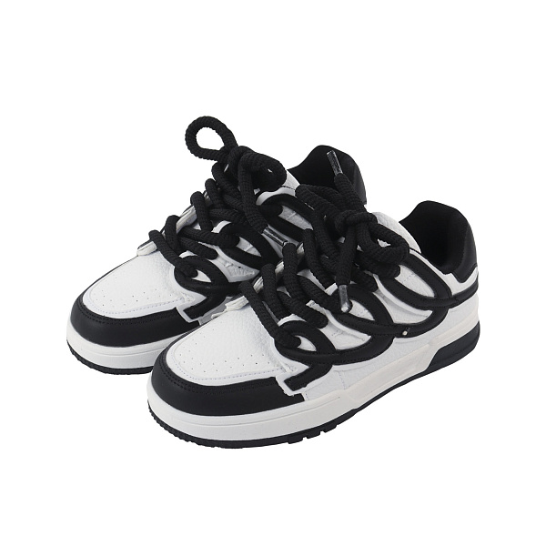 Детские полуботинки спортивного типа созданы для активных девочек. Выполненные из качественных материалов, они отличаются высокой износостойкостью и комфортом. Верхняя часть из искусственной кожи сочетает белый и черный цвета, придавая обуви современный и аккуратный вид. Толстые черные шнурки обеспечивают надёжную фиксацию и удобную посадку ноги.