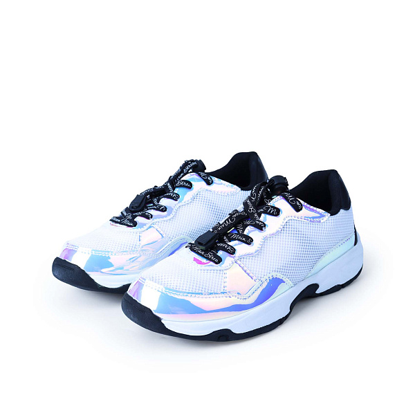 Оригинальные комбинированные спортивные полуботинки для девочек школьного возраста изготовлены из износоустойчивой кожи с лаковой поверхностью, поэтому кроссовки имеют стильный и нарядный вид. Кроссовки дополнены вставками из крупной текстильной сетки, которая обеспечивает естественную внутреннюю вентиляцию и дарит комфорт до конца дня. При этом кроссовки оснащены шнуровкой с фиксатором, которая не требует завязывания. Подкладка обуви отделана контрастным черным текстильным материалом, который завершает модный образ. Толстая подошва с аэро-вставками улучшает динамические показатели при ходьбе и беге. Подошва комбинирована из полимера двух цветов, что делает ее менее маркой и более практичной.