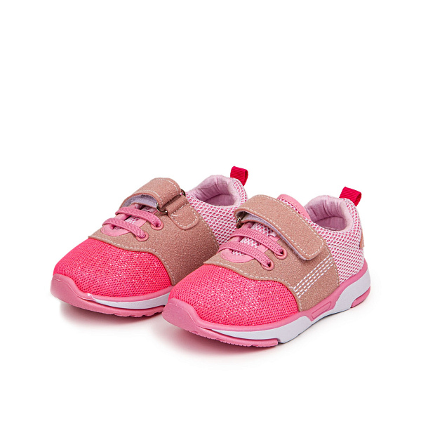 Легкие спортивные кроссовки для девочки привлекают внимание ярким и привлекательным дизайном. Текстильный материал на хлопковой основе не пропускает влагу, не впитывает грязь, легко отмывается, обеспечивает полноценную вентиляцию ног. Комфортная липучка надежно фиксирует обувь, позволяя отрегулировать полноту. В меру гибкая подошва обладает амортизирующими свойствами, не скользит, устойчива к износу. В составе материалов нет токсичных компонентов, поэтому можно не опасаться неприятной аллергической реакции.