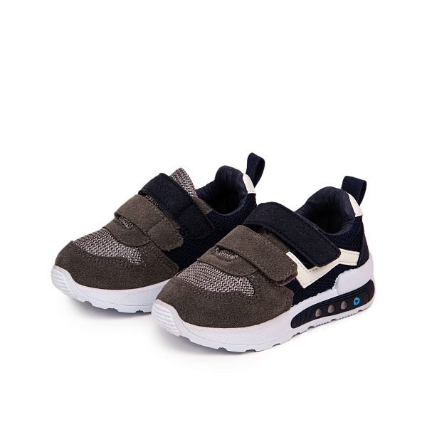 Комфортные и легкие кроссовки станут чудесной обувью для маленького мальчика. В меру жесткий задник обеспечит правильную постановку стопы. Упругая нескользящая подошва не впитывает влагу и грязь, без труда отмывается, устойчива к истиранию и износу. Текстильный материал на хлопковой основе имеет безопасный для детского организма состав, обеспечивает естественную вентиляцию ног. Широкая липучка обеспечивает надежную фиксацию и регулировку полноты. Практичные полуботинки подходят к любой одежде, легко очищаются от загрязнений.