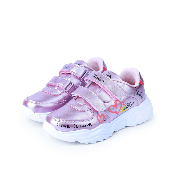Нарядные спортивные кроссовки из серебристо-розовой кожи понравятся маленьким модницам. Поверхность обуви декорирована принтом в стиле граффити. Обувь удерживается на ноге при помощи двух застежек типа «липучка», которые облегчают самостоятельное обувание и плотно зафиксируют обувь на ноге. Подкладка полуботинок отделана мягким текстильным материалом, стелька имеет покрытие из трикотажа с 80% содержанием хлопка, который обеспечивает естественную вентиляцию и дарит комфорт. Кроссовки обладают водостойкостью и подходят для прохладной погоды. Высокий рельефный протектор с противоскользящим рисунком обеспечит устойчивость на поверхности любого типа. Рекомендовано для детей дошкольного возраста.