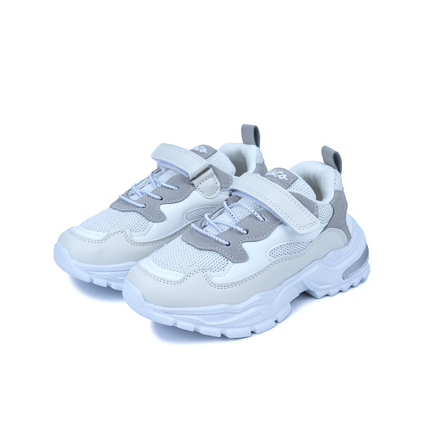 Модные кроссовки спортивного типа одобрит каждая девочка дошкольного возраста. В них можно заниматься в спортивном зале, а также отправиться в школу или на прогулку. Модель выполнена в светлых цветах, поэтому гармонично сочетается с темной или светлой одеждой. При помощи шнурка можно отрегулировать плотность прилегания, а надежная липучка упрощает процесс переобувания и фиксирует обувь на ноге.