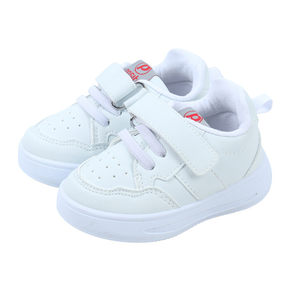 Белые кроссовки подходят для мальчика ясельного возраста. Верх сделан из искусственной кожи. Застегиваются на широкую липучку. Подошва из ПВХ имеет рельефный рисунок для лучшего сцепления с дорогой. Кроссовки подходят для повседневных прогулок.