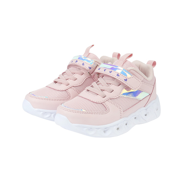 Лаконичные и нежные кроссовки для девочек созданы для повседневной носки. Белая подошва с фигурными сердечками, светящаяся при ходьбе, обязательно привлечет внимание юной модницы и подружек. Розовый дизайн кроссовок добавляет очарования, а голографические вставки оригинально блестят. Сетчатый верх дает ноге «дышать». Застежка в виде липучки поможет быстро переобуться, а шнуровка надежно зафиксирует обувь на ноге.