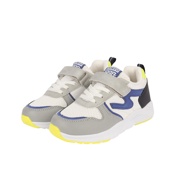 Кроссовки Pasito на липучке и шнуровке с желто-голубыми вставками серо-белые