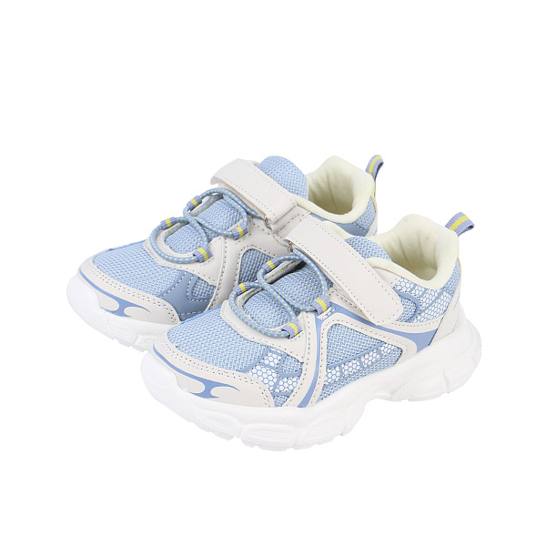 Кроссовки для малышей дошкольного возраста выполнены в нежном голубом цвете с деталями из светлого материала, что придает им стильный и современный вид. Верхняя часть обуви изготовлена из дышащей сетчатой ткани, обеспечивающей комфорт и свежесть в течение всего дня.