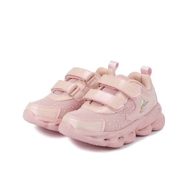 Детские кроссовки для девочек отличаются универсальным и утонченным дизайном. Они выполнены в моноцветном розовом стиле с высокой светящейся при ходьбе подошвой. Сетчатый верх декорирован сердечком, что добавляет романтичности и нежности. Застежка-липучка обеспечивает удобство при надевании и снятии обуви.