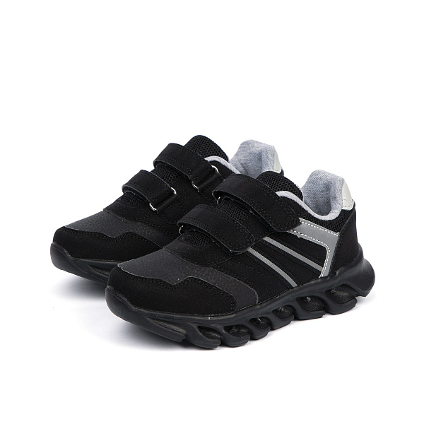 Универсальные черные кроссовки для мальчика дошкольного возраста станут отличным вариантом для ношения в теплое время года.