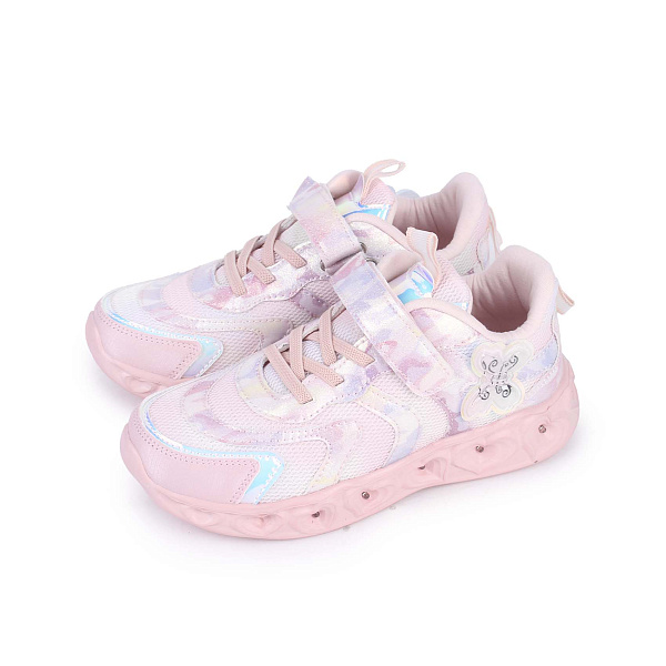 Кроссовки Pasito на липучке с огоньками и декоративной бабочкой розовые