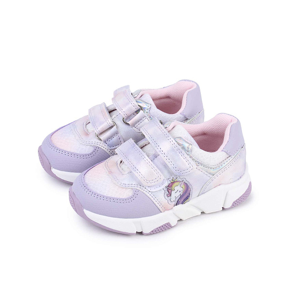 Фиолетовые кроссовки Pasito с рисунком единорога — это идеальный выбор для маленьких модниц. Верх из искусственной кожи и текстиля придает прочность и легкость в уходе. Мягкая стелька и подкладка изготовлены из хлопка. Подошва из термоэластопласта способствует хорошей амортизации и равномерному распределению нагрузки на стопу, что важно для правильного развития ног.