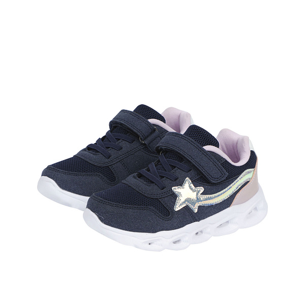Кроссовки Pasito на липучке с розовыми элементами подошва с огоньками темно-синие