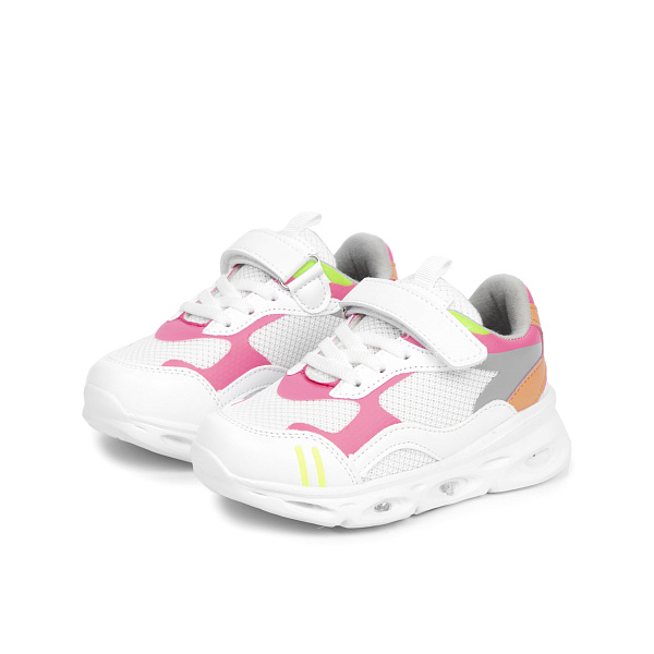 Кроссовки Pasito подошва с огоньками с разноцветными вставками с липучкой белые