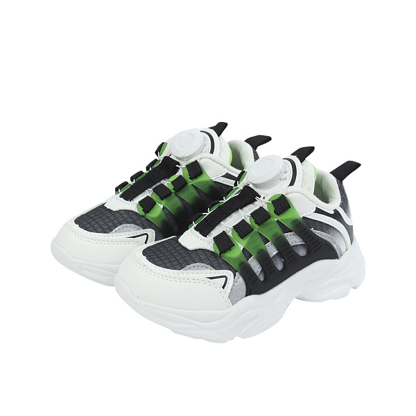 Полуботинки оформлены сочетанием белого, черного и зеленого оттенков.