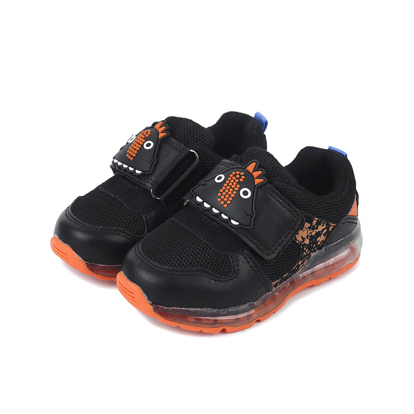 Кроссовки Pasito с мордочкой дракона на липучке с оранжевыми вставками с принтом черные