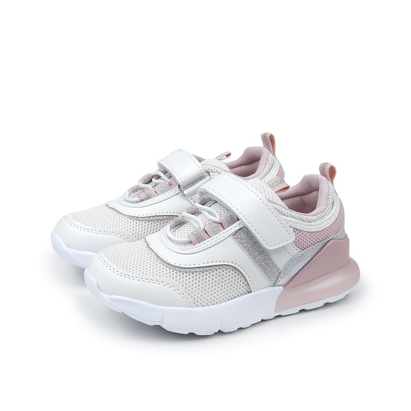 Эти светлые розово-белые кроссовки понравятся каждой подрастающей моднице! Ведь в них можно и на прогулку отправиться, и на пикник с семьей поехать. Верх кроссовок изготовлен из текстиля с мелкой перфорацией, так ноги ребенка будут «дышать» и не перегреются. А вставки из искусственной кожи увеличивают износостойкость обуви. В качестве застежки использованы шнуровка и липучка, благодаря этому обувь плотно сидит на ноге и не сползает.