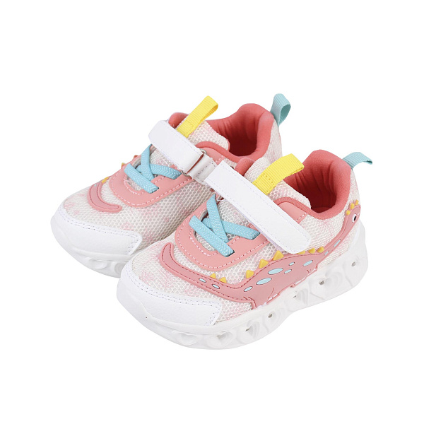 Яркие кроссовки Pasito для девочки порадуют маленьких модниц своей оригинальностью. Милая фигурка динозавра, украшающая кроссовки, добавляет уникальности и веселья. Светящаяся подошва создает праздничное настроение и повышает безопасность в темное время суток. Их легко надевать благодаря удобным липучкам, что позволяет ребенку почувствовать себя более самостоятельным.