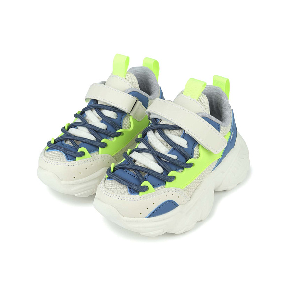 Яркие и удобные кроссовки позволят маленькому мальчику отправится на прогулку с максимальным комфортом. Для надежной фиксации обуви предусмотрен ремешок с липучкой. Его дополняет шнуровка для регулировки полноты. Шнурки двух цветов имеют функциональное и декоративное назначение.