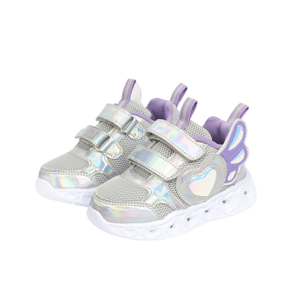 Симпатичные кроссовки станут полезным дополнением сезонного гардероба девочки ясельного возраста. Модель украшена оригинальной накладкой в виде сердечка с крылышком. Нейтральная цветовая гамма позволяет сочетать их с разными образами.