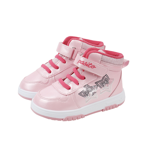 Утеплённые кроссовки для девочки нежно-розового цвета с ярко-розовыми деталями — стильный и практичный выбор для прохладной погоды. Их современный дизайн с блестящим эффектом и декоративными элементами в виде звёзд из паеток придаёт обуви очарование. Особое внимание уделено удобству — надёжная застёжка на липучке обеспечивает быструю и надежную фиксацию на ноге, а дополнительно регулируемые шнурки помогают добиться идеальной посадки.