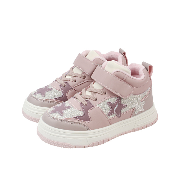 Кроссовки Pasito утепленные на шнуровке и липучке с блестящими вставками и звездами розовые