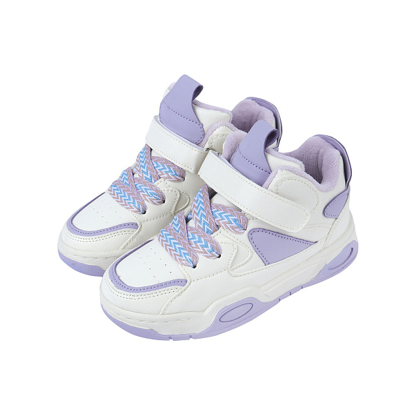 Привлекательный дизайн с комбинацией фиолетового и белого цветов подчеркнут разноцветные шнуровки. Дополнительное утепление защищает ножки от холода, делая обувь подходящей для прохладной погоды.
