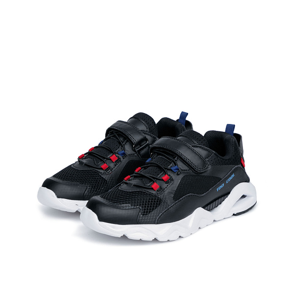 Практичный черный цвет позволяет включить обувь в гардероб ребенка, оформленный в любом стиле и цветовой гамме. Подошва изготовлена по специальной технологии и обладает высоким коэффициентом упругости. Такие кроссовки чудесно пружинят при беге, а эластичная резинка с фиксаторами и застежка-липучка надежно удерживают обувь на ноге и делают их комфортными в использовании.