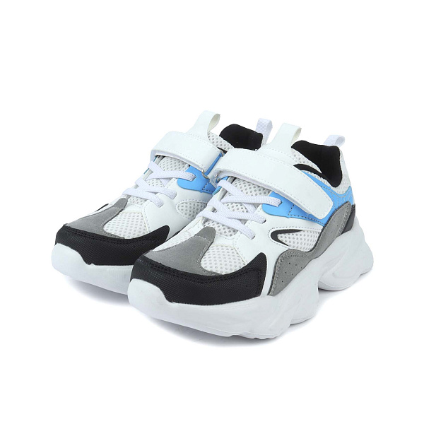 Верх кроссовок изготовлен из комбинации текстиля и экокожи. Сетчатое покрытие способствует воздухообмену. Для быстрой и удобной фиксации на ноге имеются липучки, а шнуровка позволяет отрегулировать подъем и полноту обуви. Кроссовки прекрасно подойдут для занятий спортом, в качестве сменной обуви в школе или для ежедневных прогулок на улице.