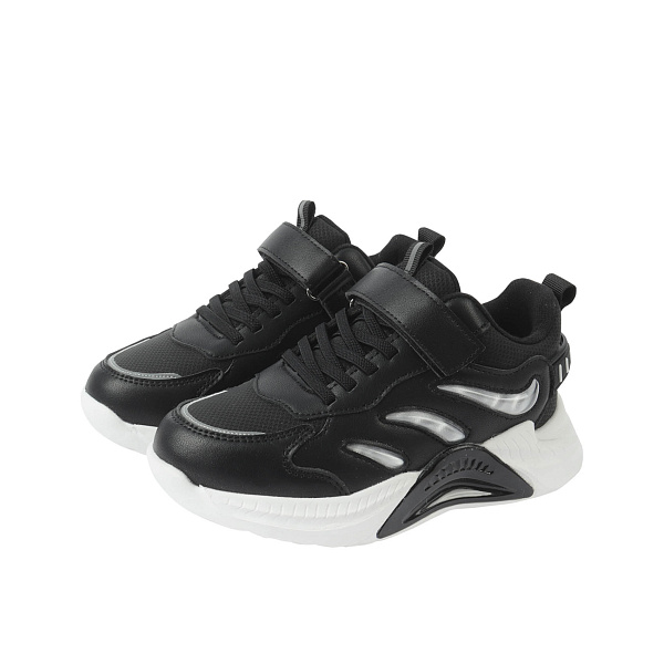 Детские повседневные ботинки для мальчиков в черном цвете. Верх модели выполнен из текстиля и вставок из искусственной кожи. По бокам приклеены объемные декоративные элементы. Внутри кроссовок мягкая хлопчатобумажная подкладка и стелька. Они хорошо пропускают воздух и дают коже ног дышать. Высокая пятка фиксирует положение ноги при ходьбе.