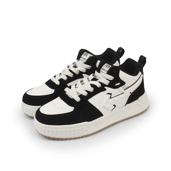 Кроссовки для мальчика выполнены в стильном сочетании белого и черного цвета с аккуратным дизайном и контрастной шнуровкой. Обувь выглядит стильной и современной, с удобной подошвой. Модель идеально подходит для школьных будней — выглядит аккуратно и хорошо сочетается с различной одеждой.