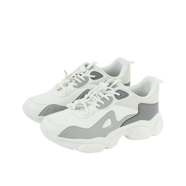 Мальчику школьного возраста понравятся стильные кроссовки, оформленные в светлой цветовой гамме. Модель привлекает внимание динамичным дизайном, послужи в качестве уличной, сменной и спортивной обуви. Широкий язычок в сочетании с классической шнуровкой позволяет скорректировать посадку на ноге.