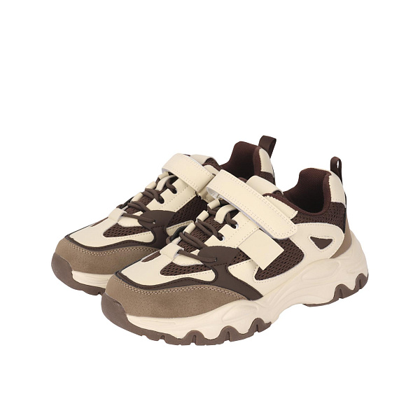 Эти стильные и удобные полуботинки-кроссовки для мальчиков – именно то, чего не хватало в повседневном гардеробе. Выполнены в универсальных бежевых и коричневых оттенках, которые хорошо сочетаются с разными стилями и цветами в одежде. У изделия два типа застежек: шнуровка и липучка.