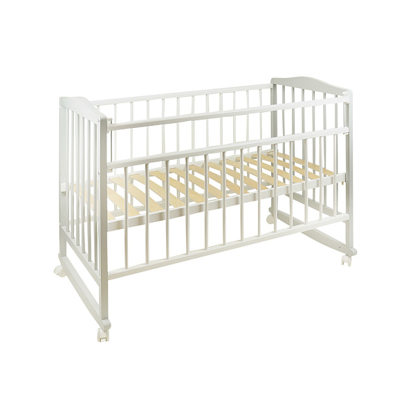 На передней боковой стороне имеется механизм опускания планки, чтобы маме было легче доставать ребенка. Ортопедическое реечное основание обеспечивает комфортное положение тела малыша, способствуя правильному формированию позвоночника, и хорошую естественную вентиляцию матраса. Размер ложа 60х120 см. Предусмотрено два положения основания по высоте.