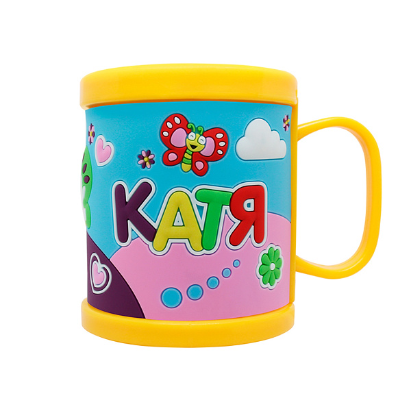 Яркая, прочная и легкая чашка с именем «Катя» станет полезным приобретением для маленькой девочки. Ребенка удивит и порадует оригинальный дизайн с бабочками и цветочками и на фоне неба, а собственное имя, нанесенное на изделие, вызовет восторг. Прочный ПВХ не имеет в своем составе вредных соединений, в полной мере отвечает мировым требованиям санитарных и гигиенических стандартов.